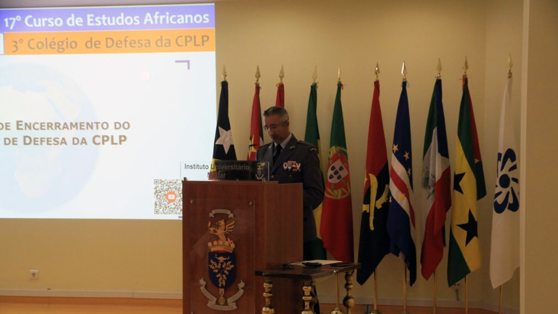 Decorreu no Auditório Gago Coutinho do Instituto Universitário Militar (IUM), no passado dia 23 de setembro, a cerimónia de Encerramento da 3ª Edição do Colégio de Defesa da CPLP, a qual foi presidida Exmº Comandante do IUM, Tenente-general António Martins Pereira.