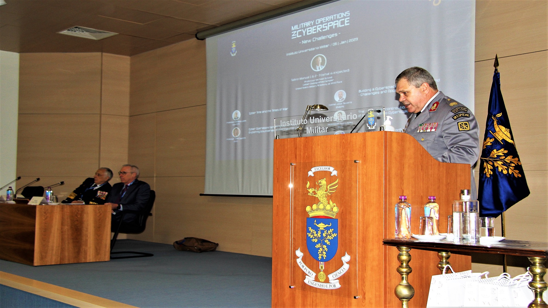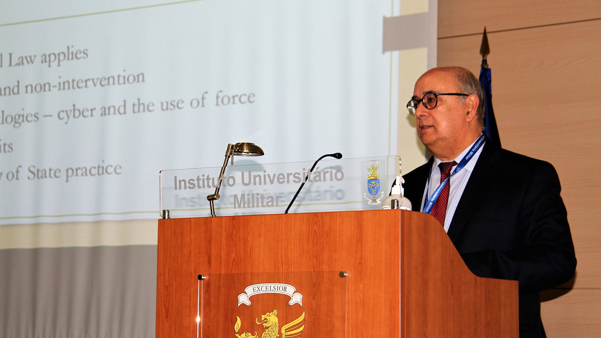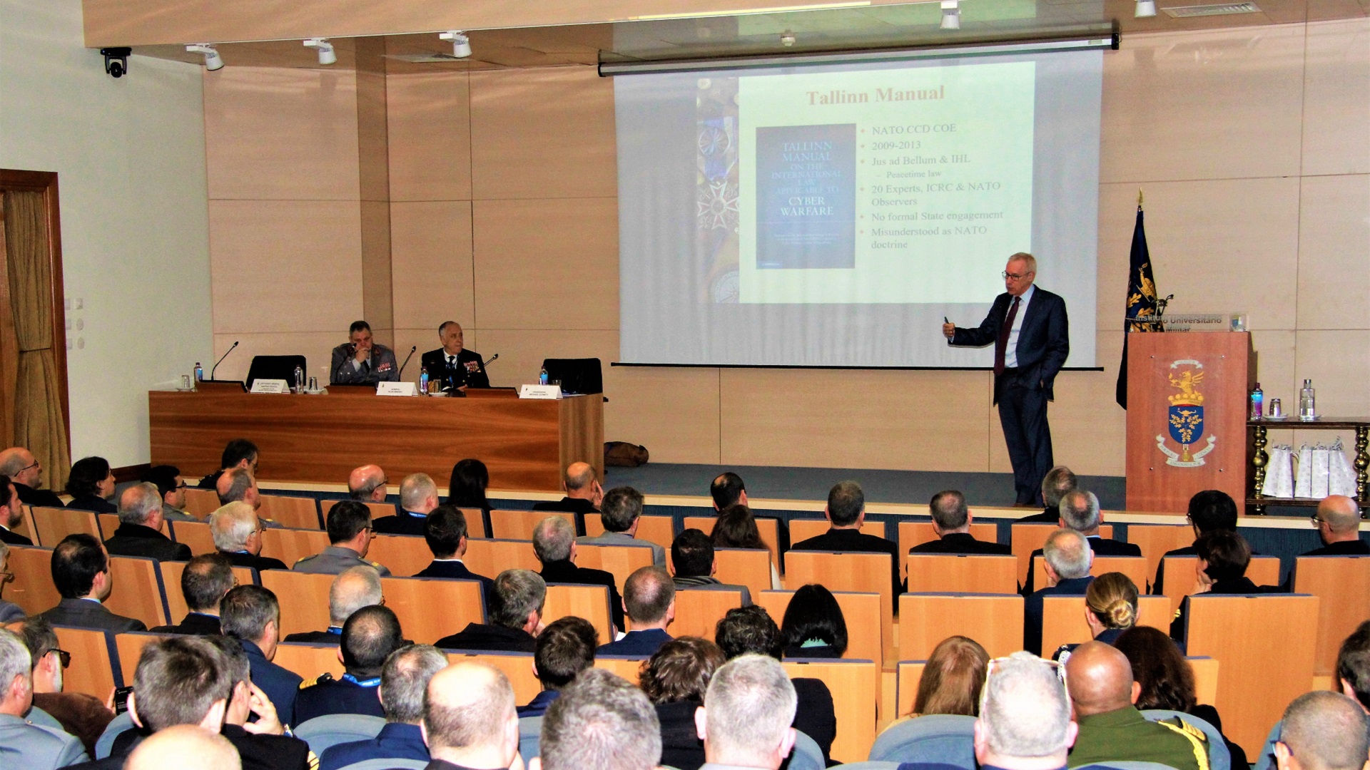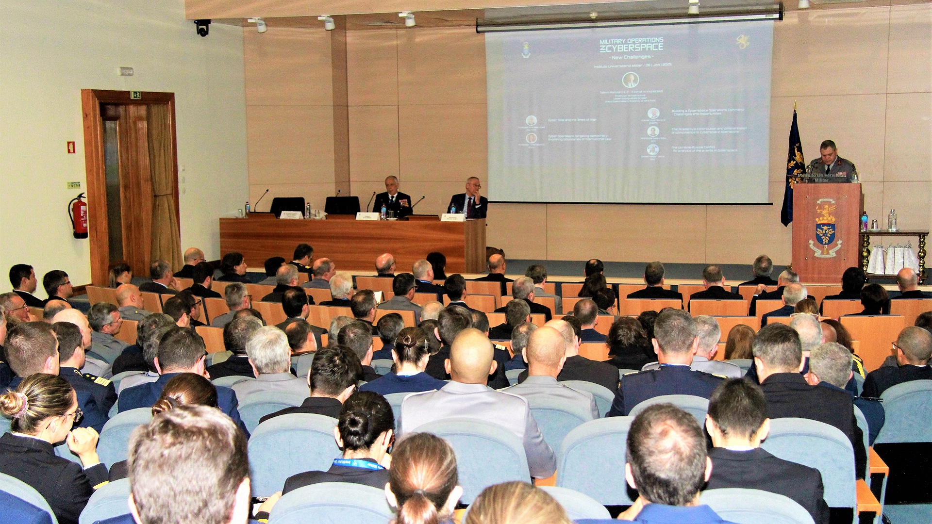 Decorreu no Instituto Universitário Militar (IUM) a conferência “Operações Militares no Ciberespaço – Novos desafios”, com a presença do Professor Michael Schmitt, da Universidade de Reading, especialista de renome internacional na área da aplicação do Direito Internacional ao Ciberespaço que liderou a elaboração do Manual de Talín, e que foi acompanhado pelo Professor José Alberto Azeredo Lopes, da Universidade Católica Portuguesa – Porto, e pela Professora Sofia de Vasconcelos Casimiro, da Faculdade de Direito da Universidade de Lisboa, tendo sido debatida a problemática das Operações Militares no Ciberespaço, no âmbito do Direito Internacional, bem como o futuro das Operações Ciber, neste contexto.