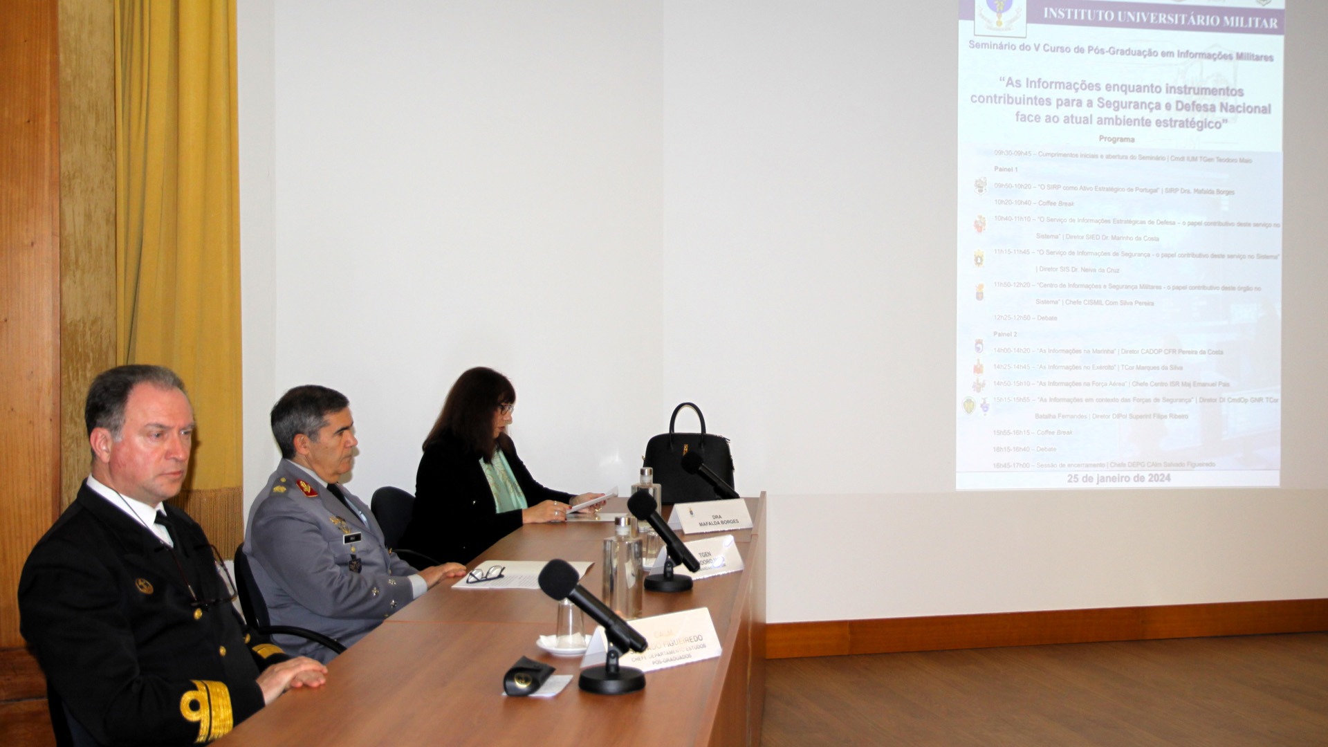 Teve lugar no Instituto Universitário Militar, no dia 02 de fevereiro de 2024, a cerimónia de encerramento da 5ª Edição do Curso de Pós-Graduação em Informações Militares, presidida pelo Excelentíssimo Contra-almirante Salvado de Figueiredo, Chefe do Departamento de Estudos Pós-graduados do Instituto Universitário Militar.