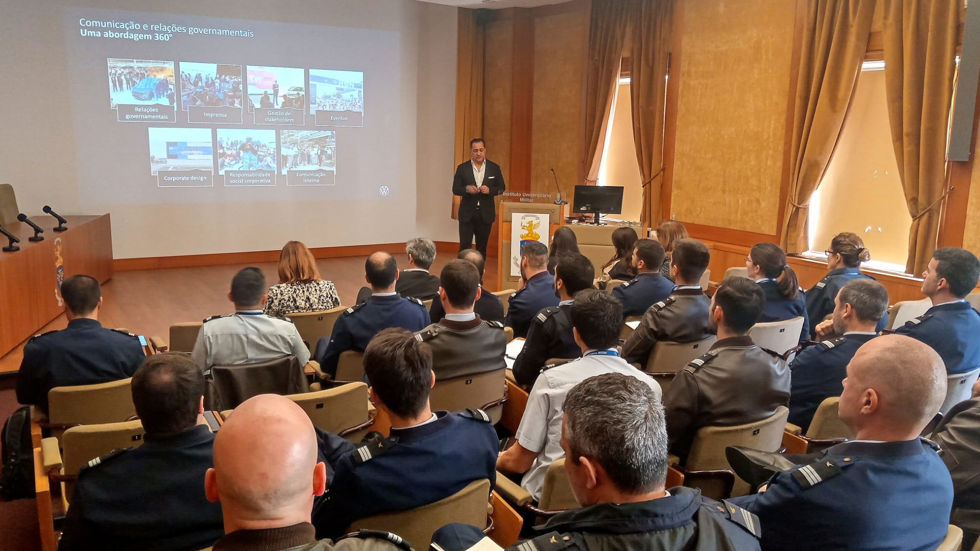 Para o efeito, participaram nesta edição o Dr. João Delgado, Diretor de Comunicação e Relações Governamentais da Volkswagen Autoeuropa, a Dr.ª Susana Santos, Diretora de Comunicação e Relações Institucionais do El Corte Inglês, o Dr. Rui Cabrita, Diretor de Comunicação da EDP e a Dr.ª Maria Mestre, responsável pelo Departamento de Comunicação Interna do Grupo Nabeiro. O Seminário teve a coordenação da Área de Ensino Específico da Força Aérea.
