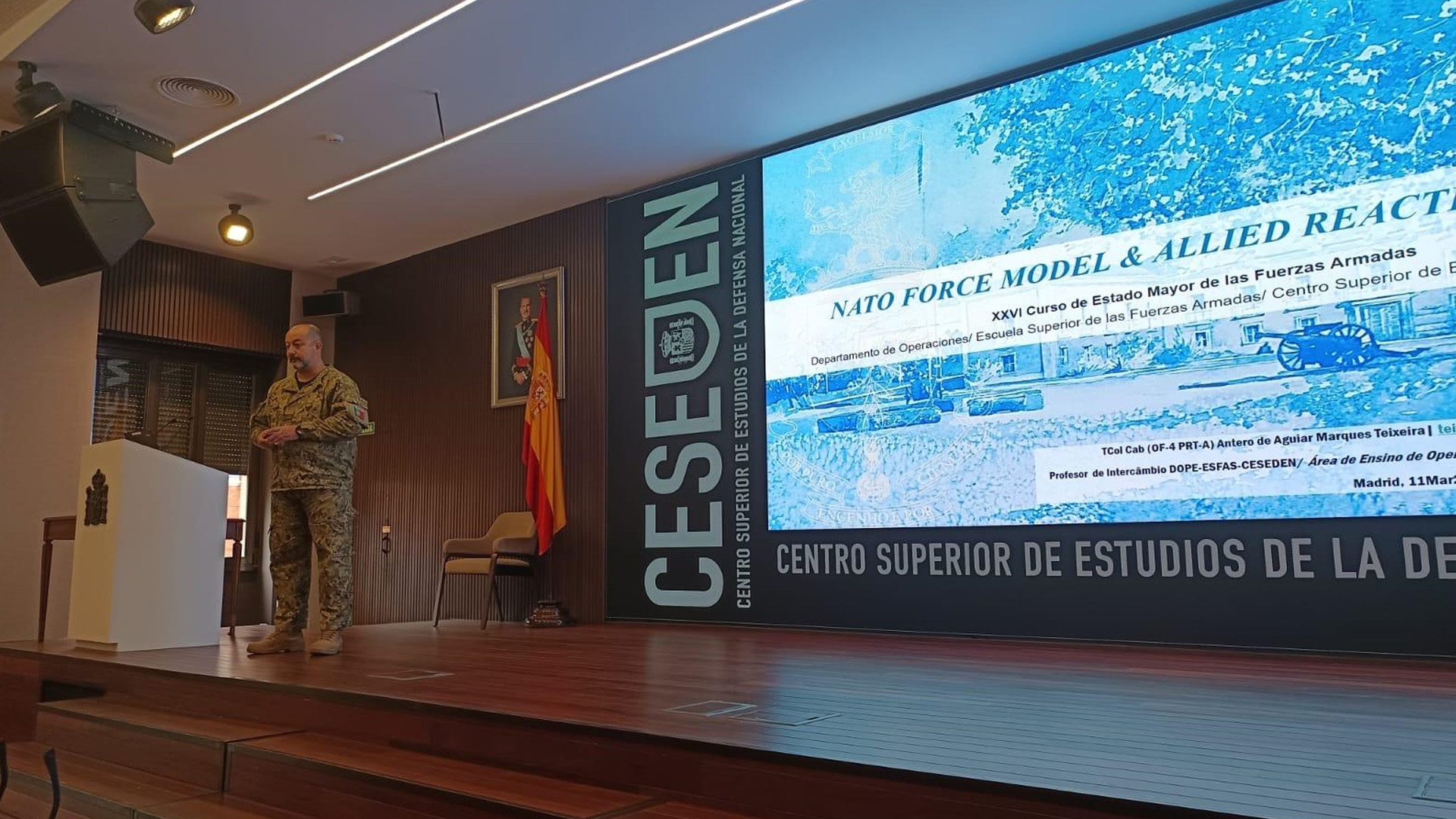 Decorreu de 25Fev25 a 11Apr25 parte do intercâmbio de longa duração de docentes entre o Instituto Universitário Militar (IUM) e o Centro Superior de Estudios de la Defensa Nacional (CESEDEN), sediado em Madrid, Espanha.