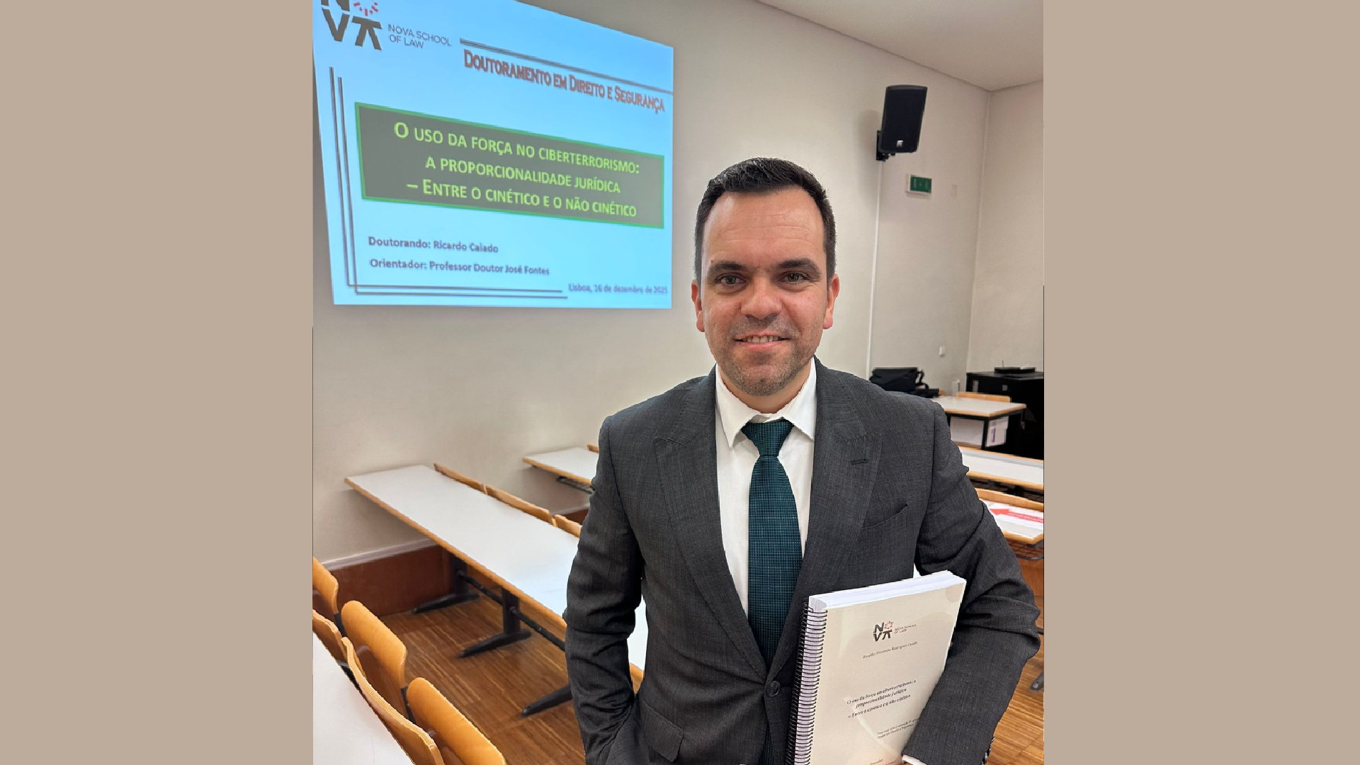 No dia 16 de dezembro de 2025, o Chefe do Gabinete dos Serviços Académicos da Unidade Politécnica Militar (UPM), Tenente-Coronel Ricardo Caiado da GNR - Guarda Nacional Republicana, defendeu publicamente a sua tese de Doutoramento em Direito e Segurança, subordinada ao tema “𝑂 𝑢𝑠𝑜 𝑑𝑎 𝑓𝑜𝑟𝑐̧𝑎 𝑛𝑜 𝑐𝑖𝑏𝑒𝑟𝑡𝑒𝑟𝑟𝑜𝑟𝑖𝑠𝑚𝑜: 𝑎 𝑝𝑟𝑜𝑝𝑜𝑟𝑐𝑖𝑜𝑛𝑎𝑙𝑖𝑑𝑎𝑑𝑒 𝑗𝑢𝑟𝑖́𝑑𝑖𝑐𝑎 - 𝑒𝑛𝑡𝑟𝑒 𝑜 𝑐𝑖𝑛𝑒́𝑡𝑖𝑐𝑜 𝑒 𝑜 𝑛𝑎̃𝑜 𝑐𝑖𝑛𝑒́𝑡𝑖𝑐𝑜”.